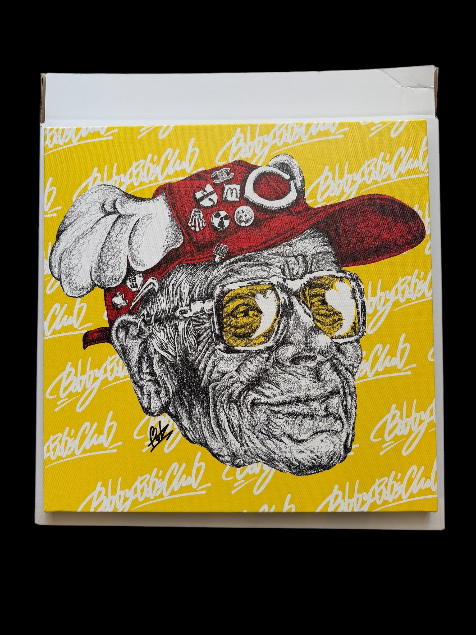 個展のメインビジュアルであるスーパールーキーをUVプリントした1枚
