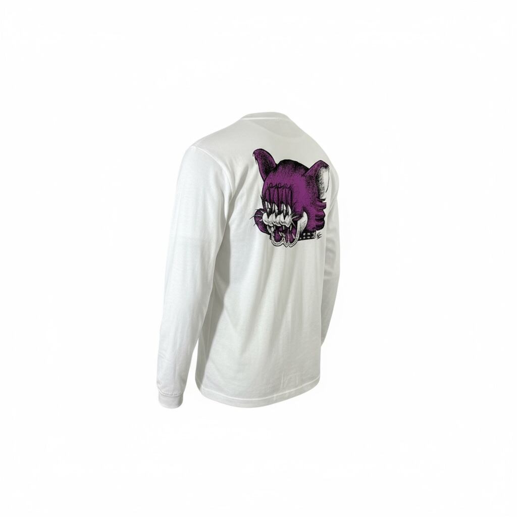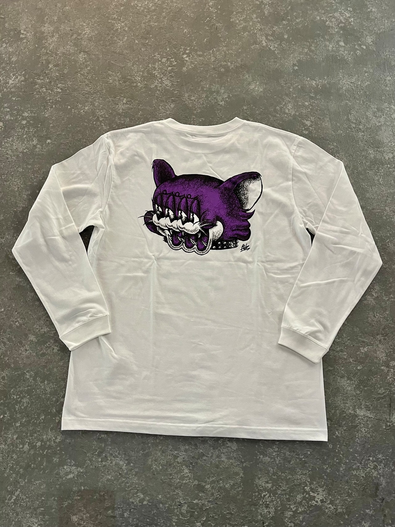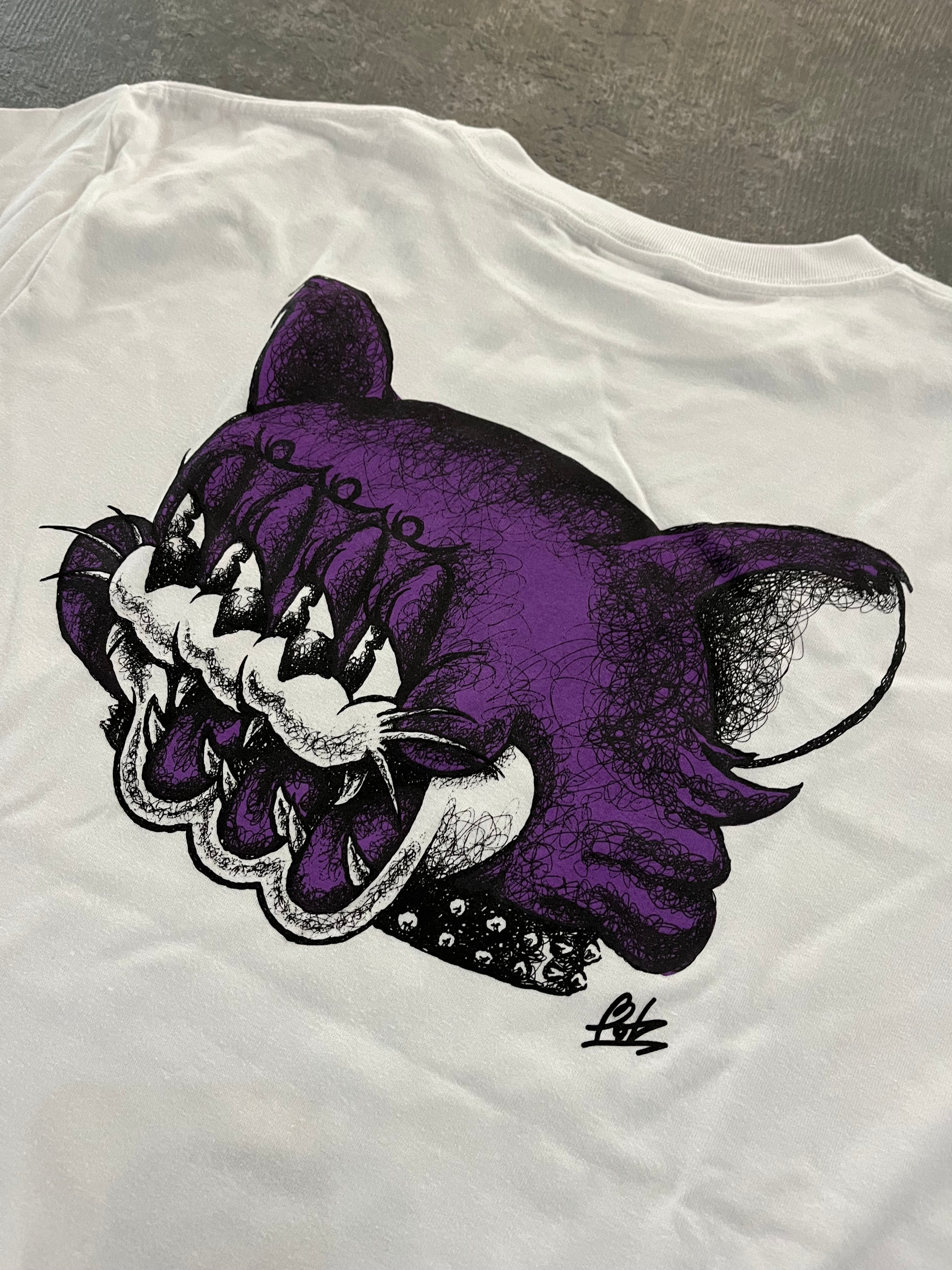 パープルで猫の3フェイスをバックプリントにデザインした1枚