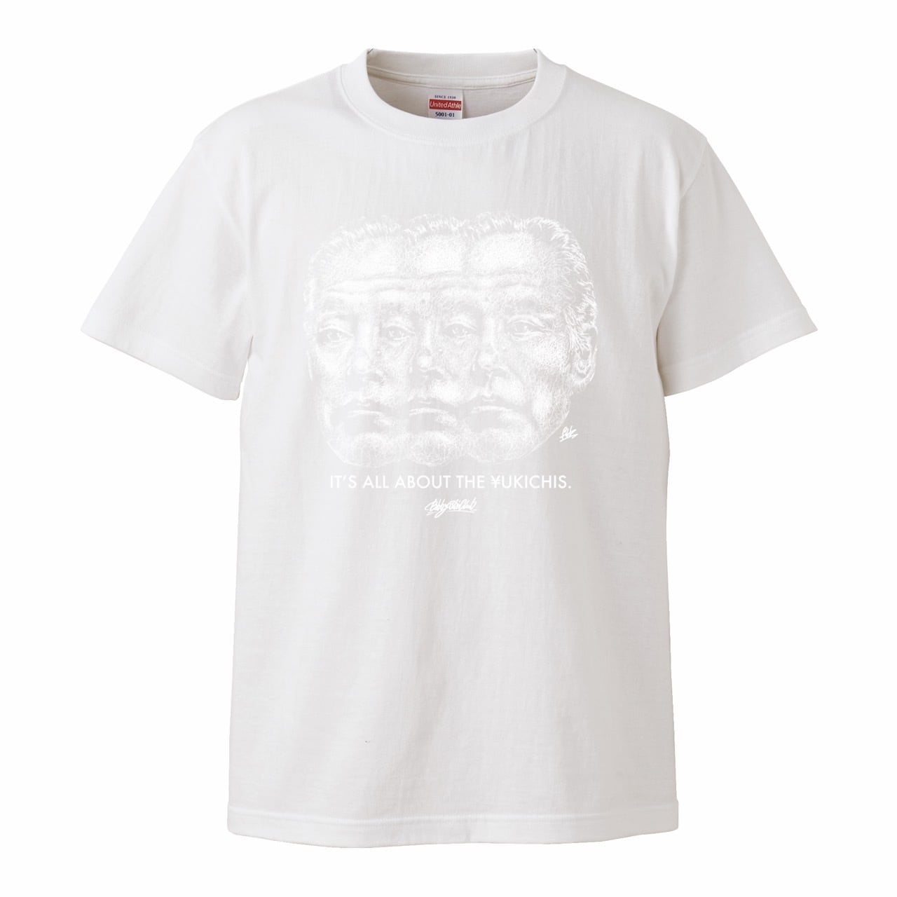 皮肉を込めたメッセージとひとふでがきで描かれた3FACE YUKICHIのデザインが目を引く1枚。